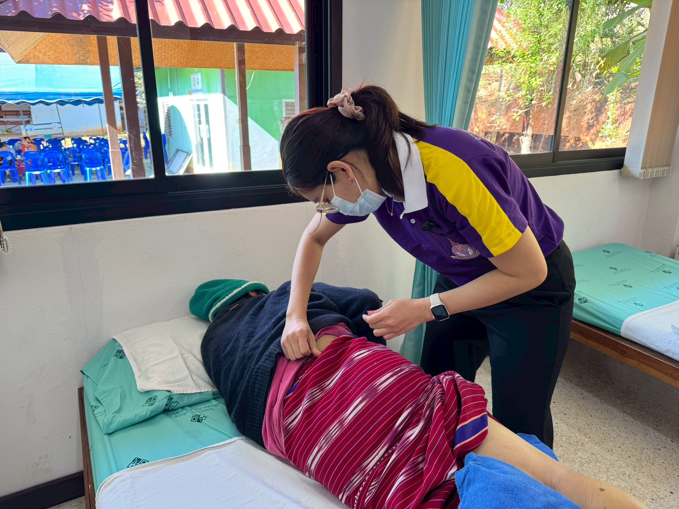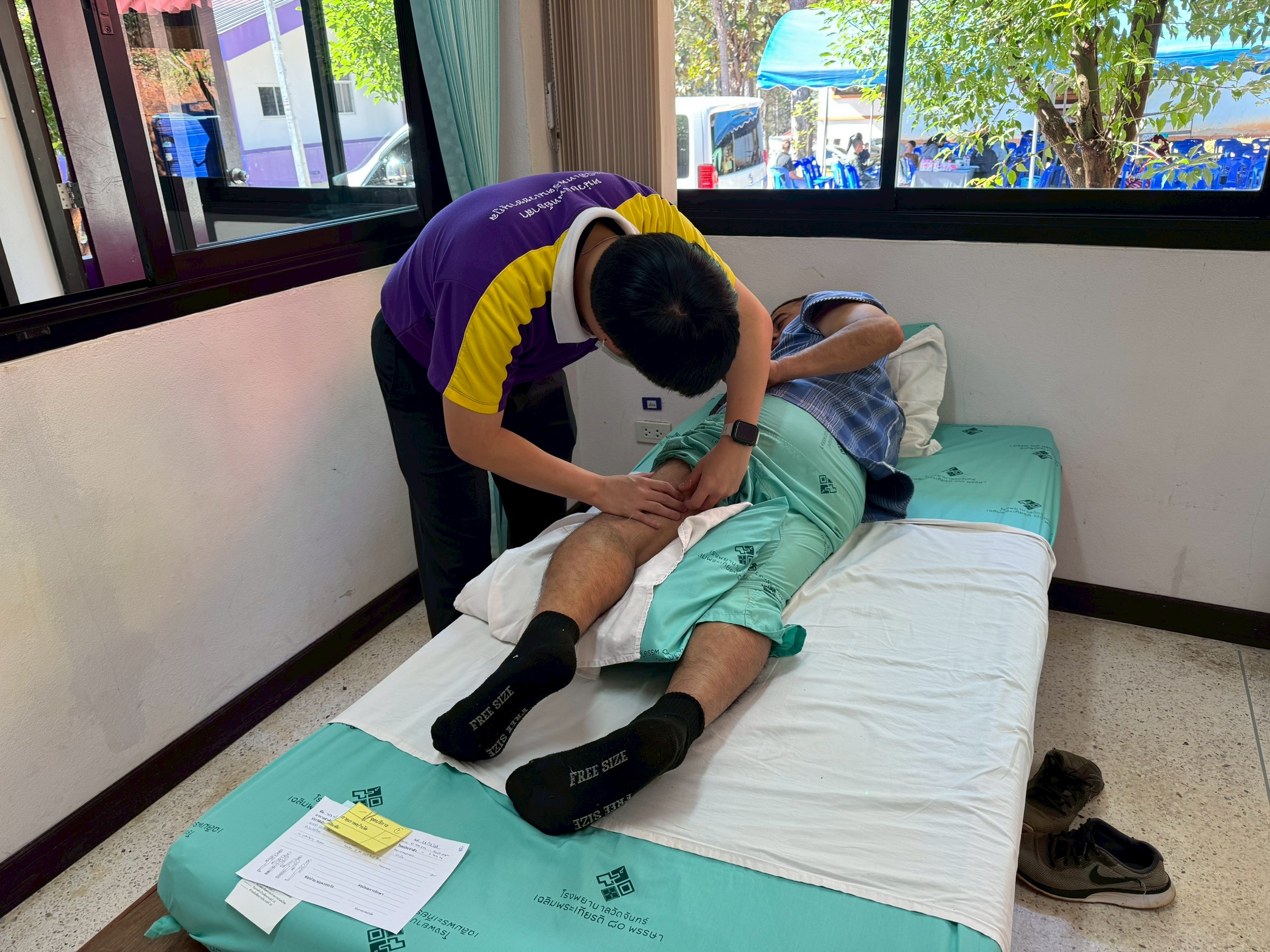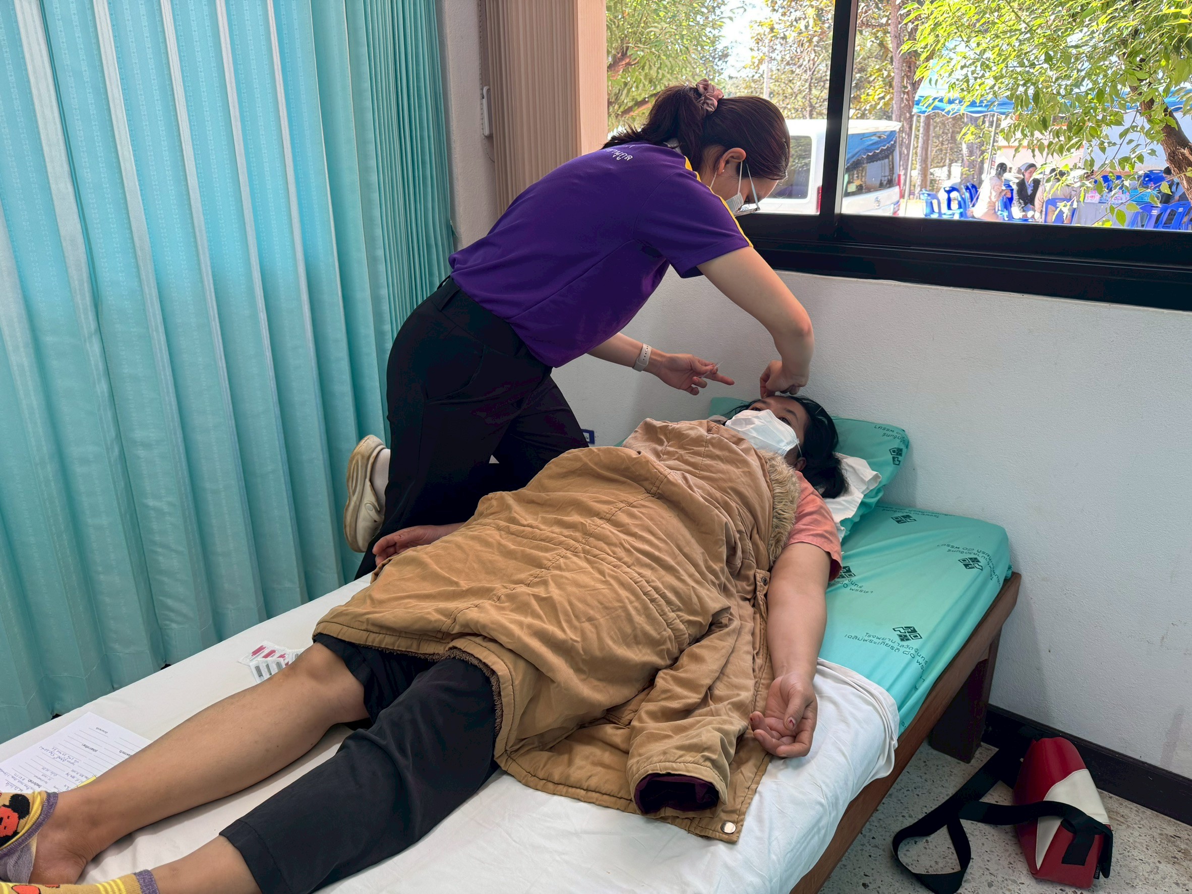 มีผู้ป่วยมารับบริการทั้งหมด 21 ราย ผู้ป่วยส่วนใหญ่มาด้วยอาการปวดเมื่อยตามร่างกาย บางรายมีอาการปวดร้าวลงขา หรือปวดร้าวไปยังแขน แพทย์ได้ทำการตรวจวินิฉัยและให้การรักษาโดยการทำกายภาพบำบัด การกระตุ้นด้วยไฟฟ้า ควบคู่กับการฝังเข็ม ซึ้งผู้ป่วยในแต่ละรายจะได้รับรักษาแตกต่างกันไปตามสภาพปัญหาของผู้ป่วย ทั้งนี้ผู้ป่วยแต่ละรายจะได้รับการนัดหมายเพื่อมาทำกายภาพบำบัดต่อเนื่องที่โรงพยาบาลวัดจันทร์เฉลิมพระเกียรติฯ ต่อไป